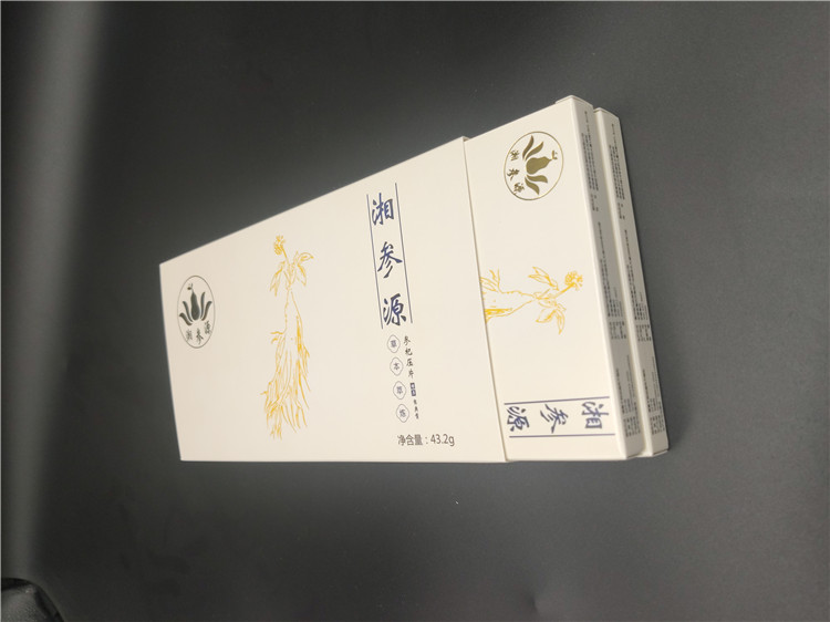 這是一款長沙保健品包裝盒,采用白卡紙印刷覆膜,做了燙金工藝,突出主題。整體精致美觀,比一般藥品卡盒顯高檔。